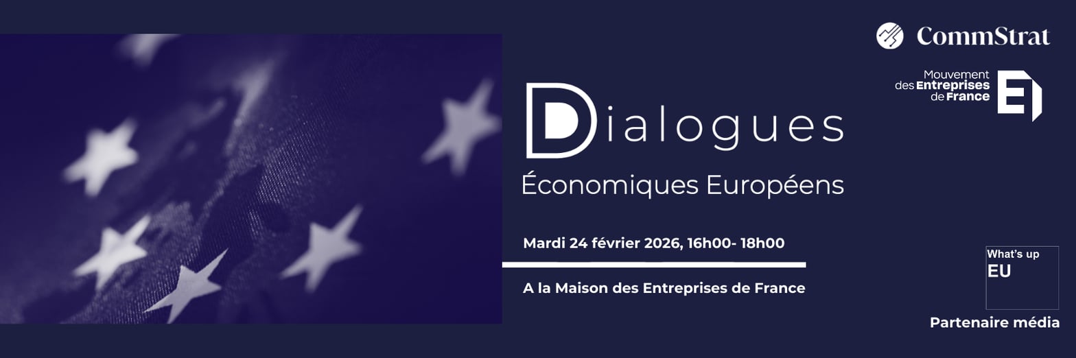 What’s up EU est partenaire média de la première édition des dialogues économiques européens organisée par le MEDEF et CommStrat le 24 février de 16h à 18h à Bruxelles.